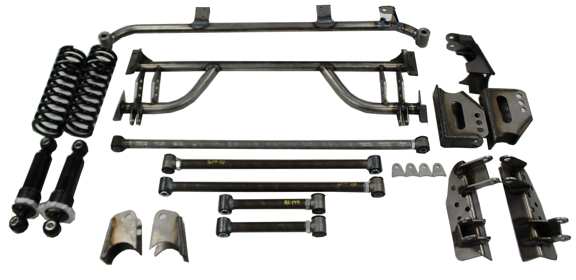 Bolt-on maximum performance for your 1967-1969 Camaro or Firebird. Heidts new 4 link kit is built to work with mini tub kits for high horsepower cars and autocross applications. Kit includes chassis and axle brackets, adjustable links, full upper coil-over crossmember, panhard bar, adjustable HEIDTS coil-overs and all hardware. Adjustable 4-link mounts allow suspension tuning. Optional 9" housing, axles and Moser center sections are available.